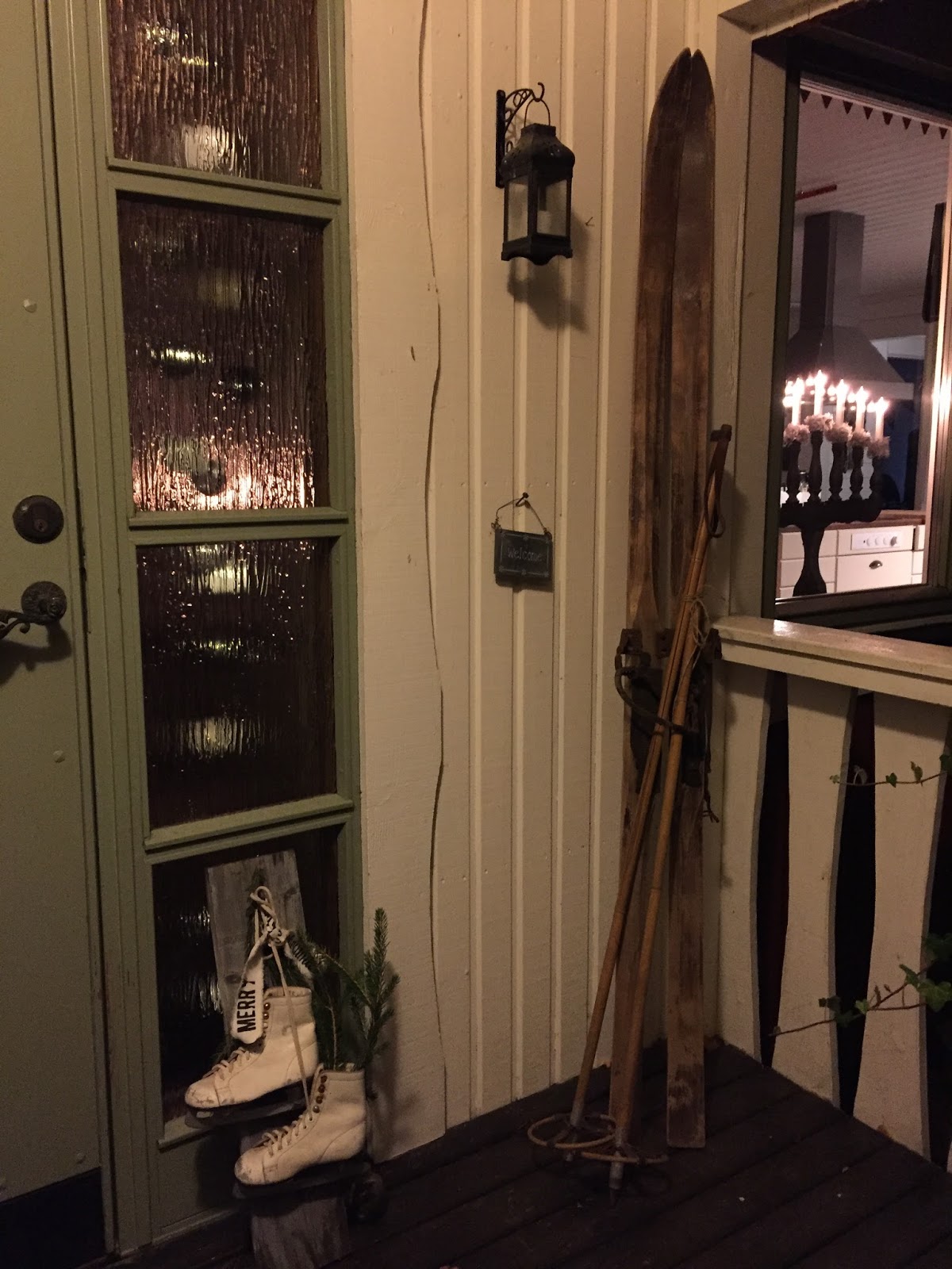 Något som inte är nytt är skidorna och skridskorna på verandan hittade snyggaste stavarna på loppis i våras så nu är det bara ett par gamla pjäxor som ska till oxå. Är det någon som har så säg till